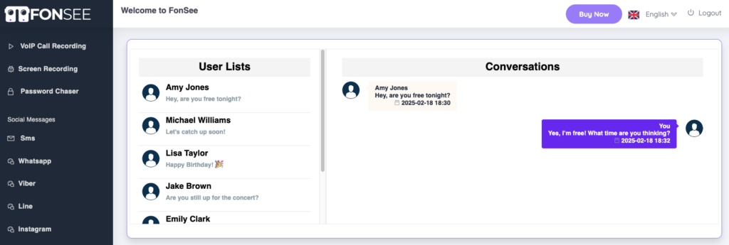 FonSee quickly captures every moment on WhatsApp across the targeted smart devices. This ensures the deleted chats are securely stored, even when the sender deletes them from your chats menu. You don’t have to depend on notifications or backups to see lost messages. It delivers a complete, precise record of all discussions in real time.